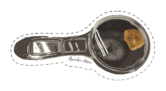 A 3.33″ x 1.61″ sticker of Flammulina velutipe Spore Print observed through a children’s magnifying glass